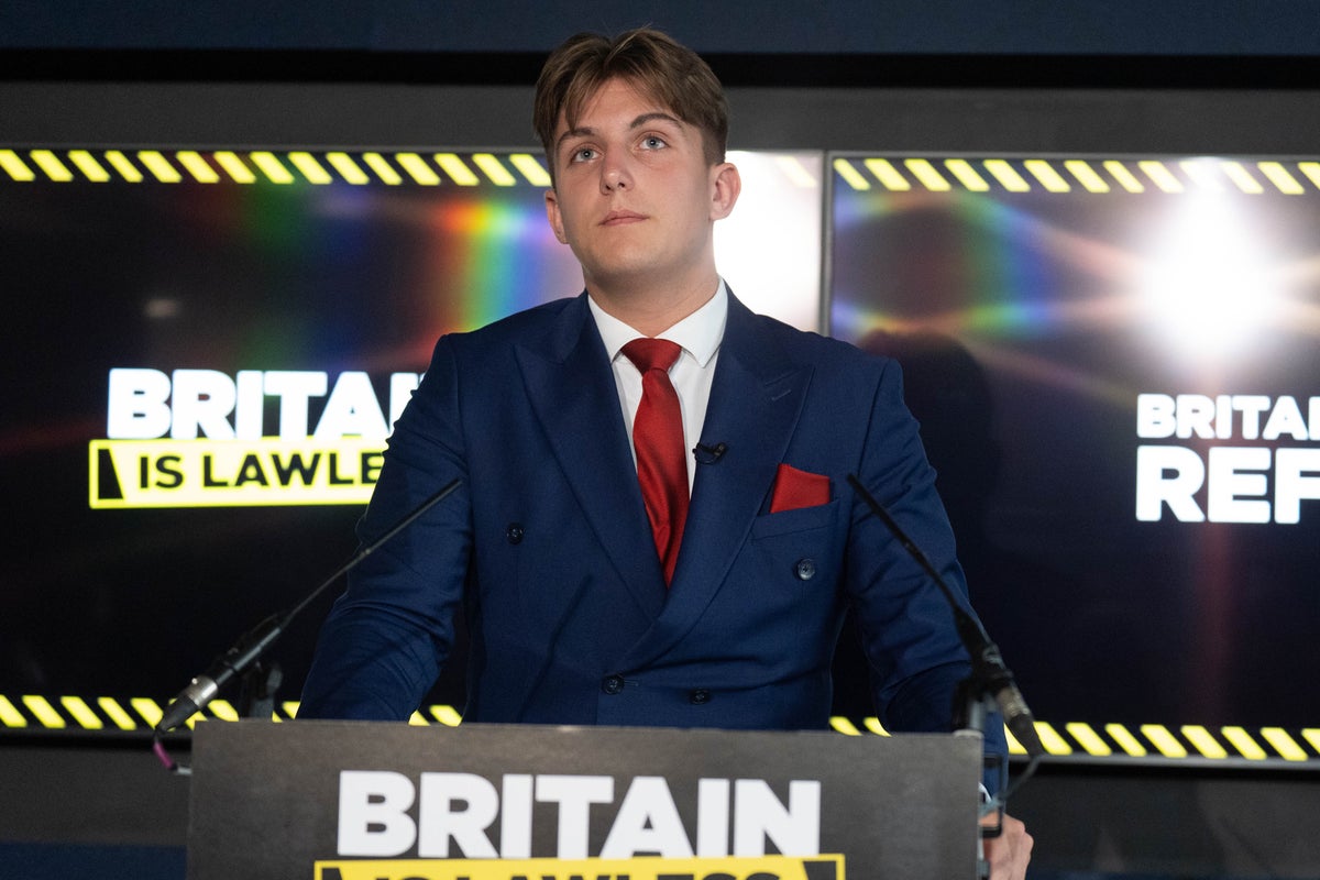Nigel Farage was outlining his party’s plans for the criminal justice system at a press conference with the banner ‘Britain is lawless’